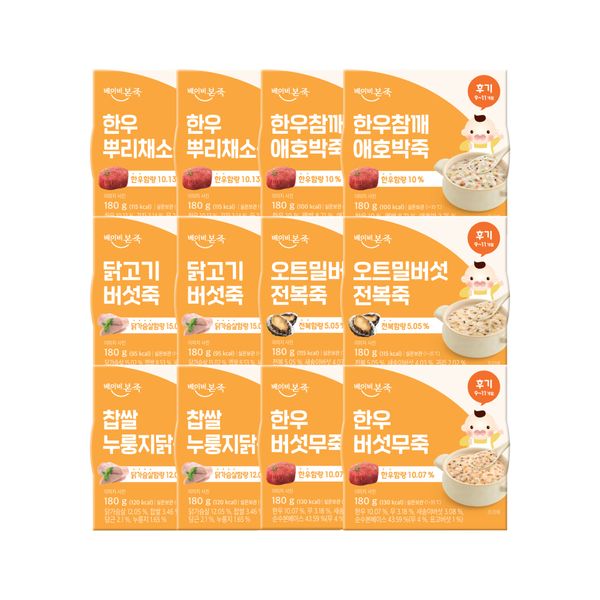 얌이밀 이유식 중기 2단계 7-12개월 죽 12종(200g)