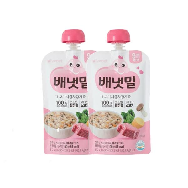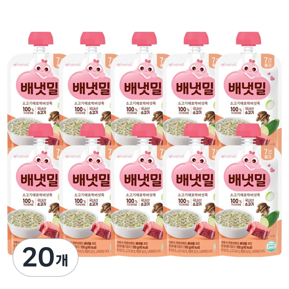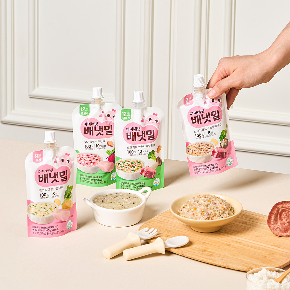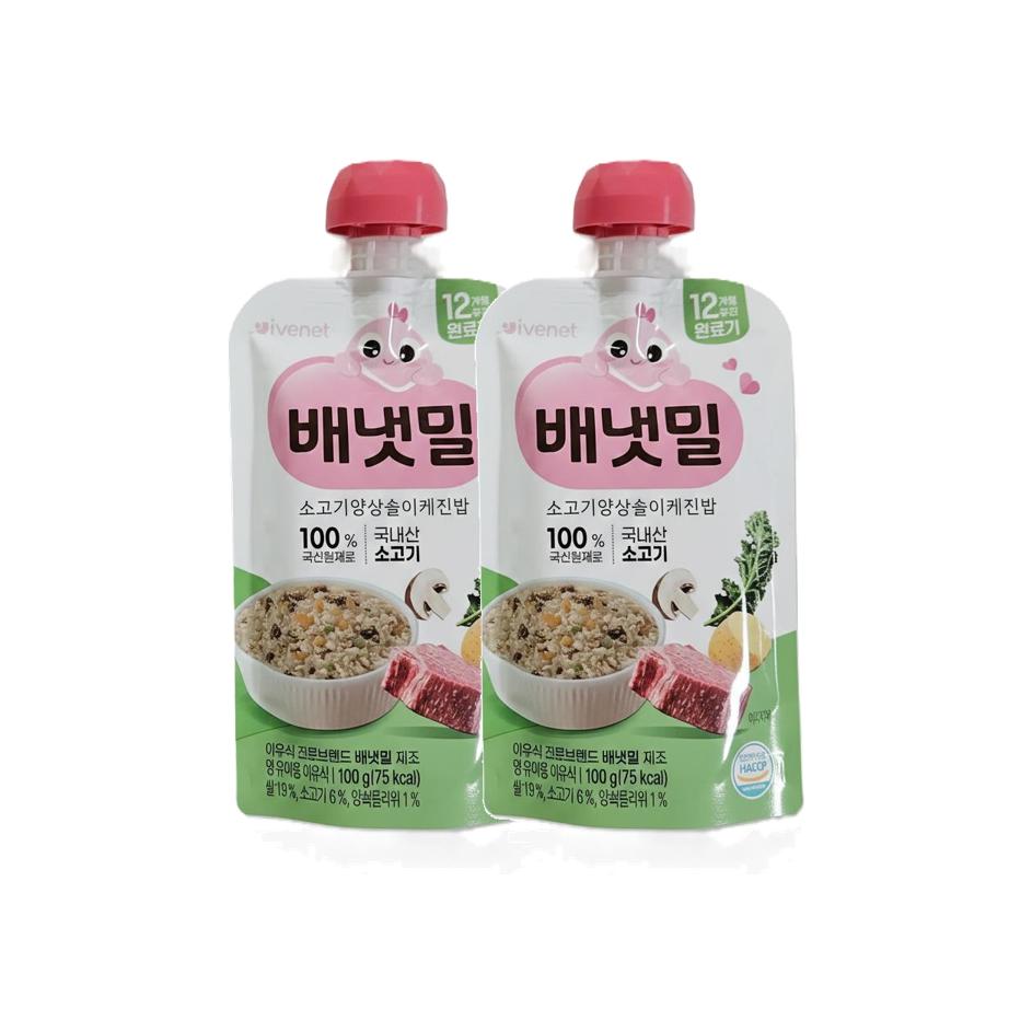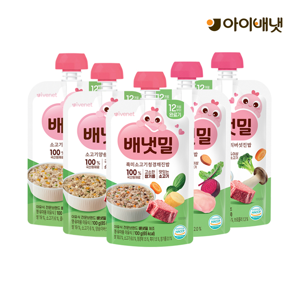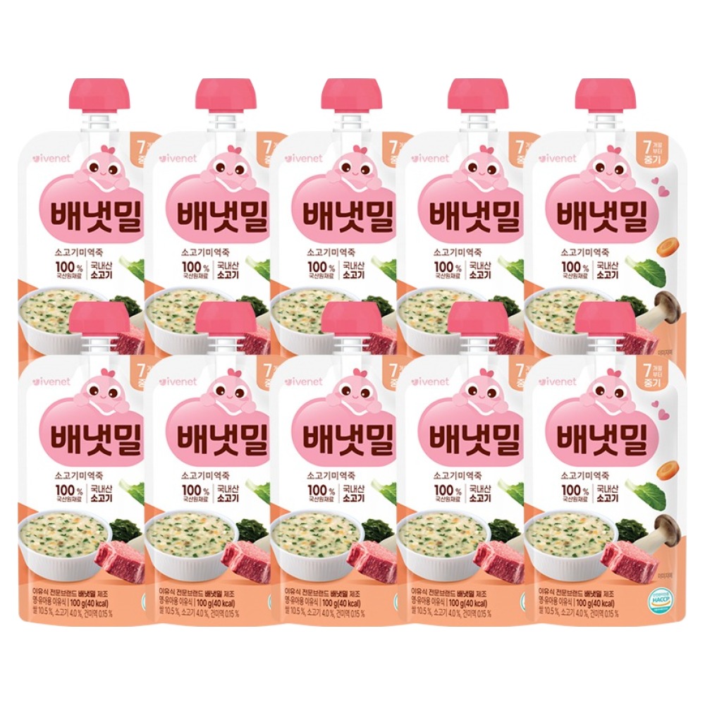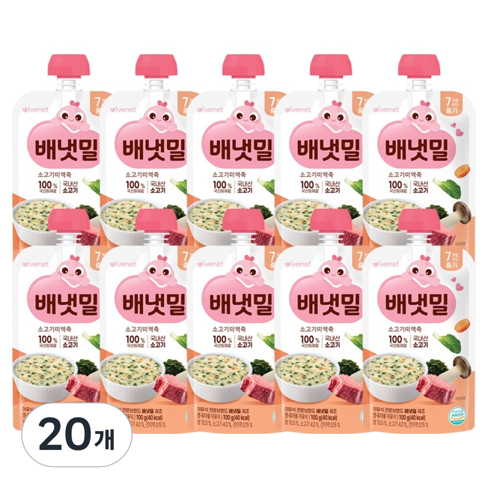 배냇밀 중기 이유식 100g 20개입 혼합맛 소고기 미역 유아식 간편식 실온이유식 아기밥