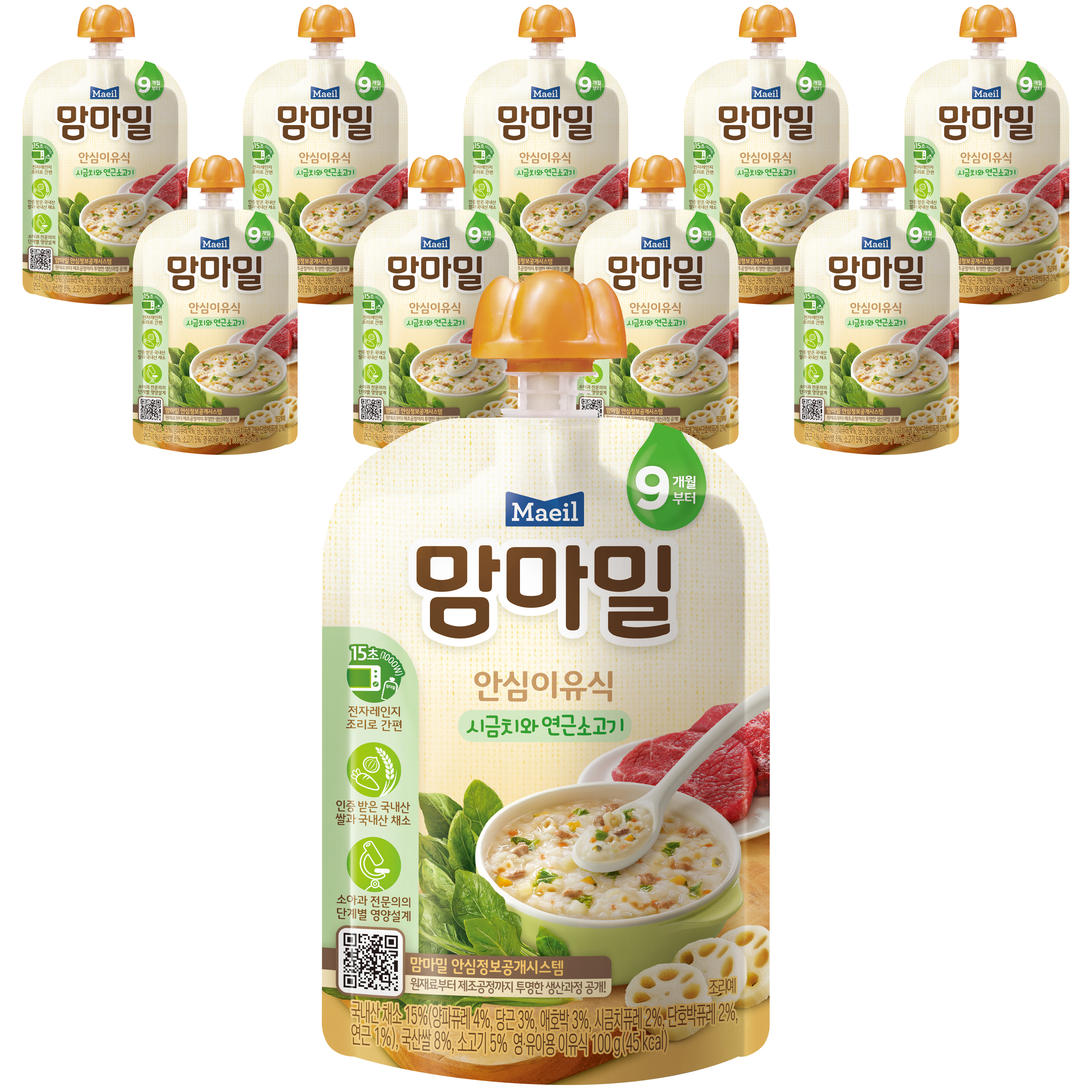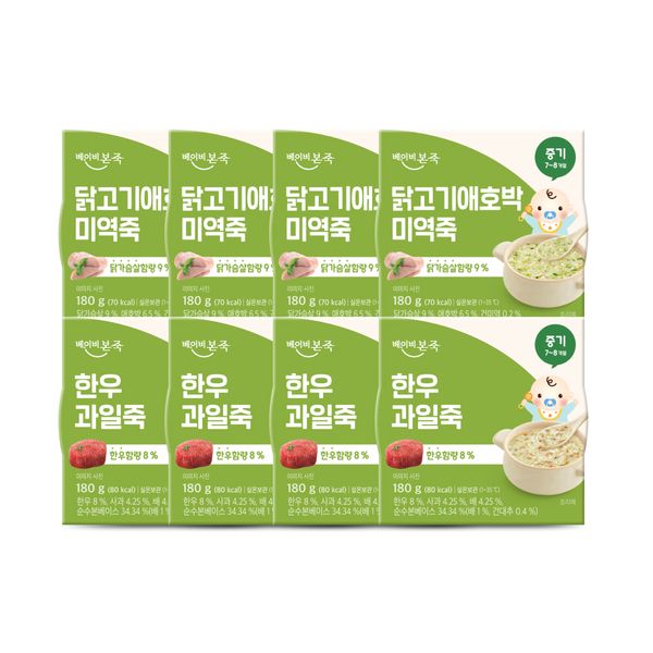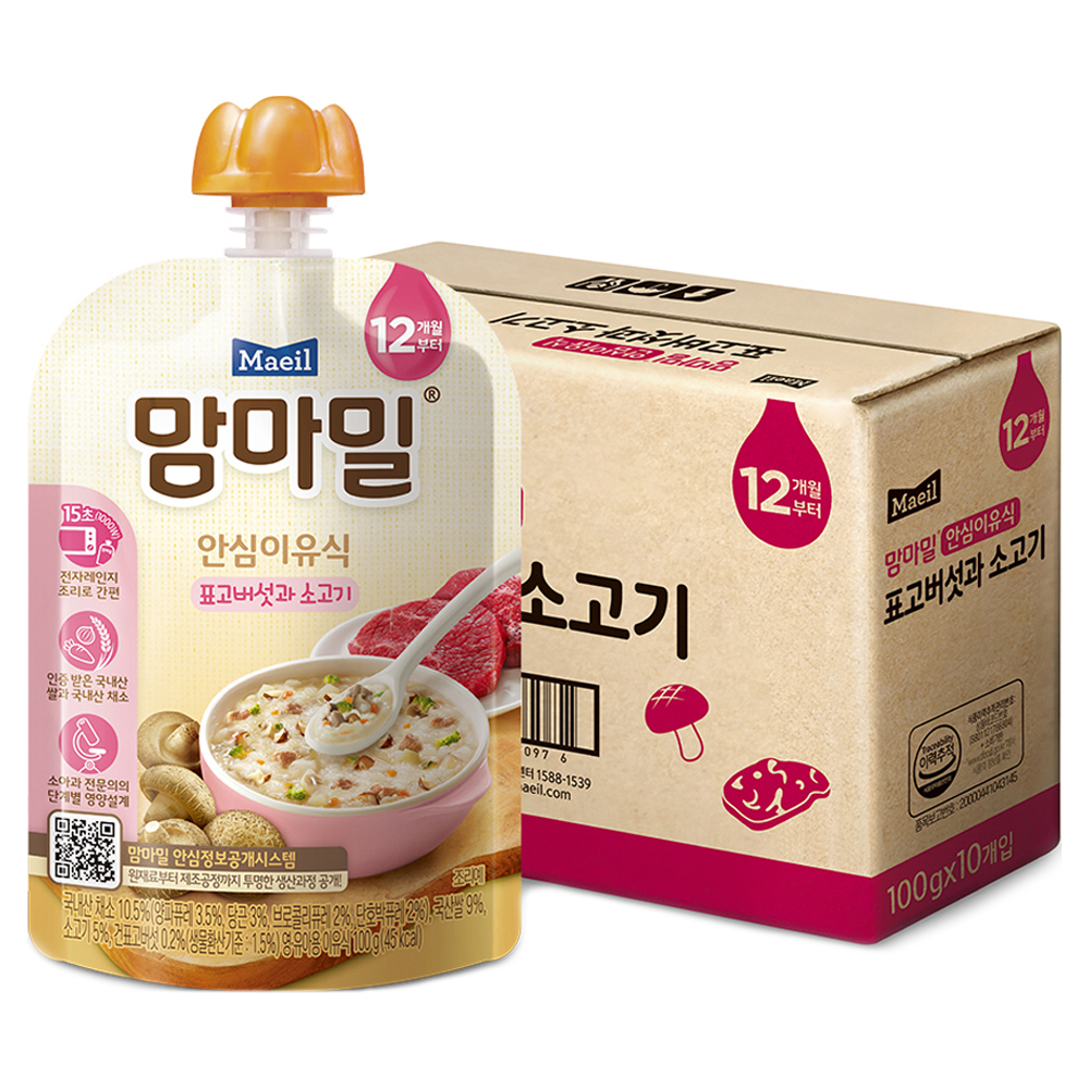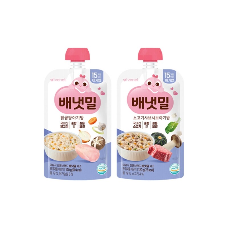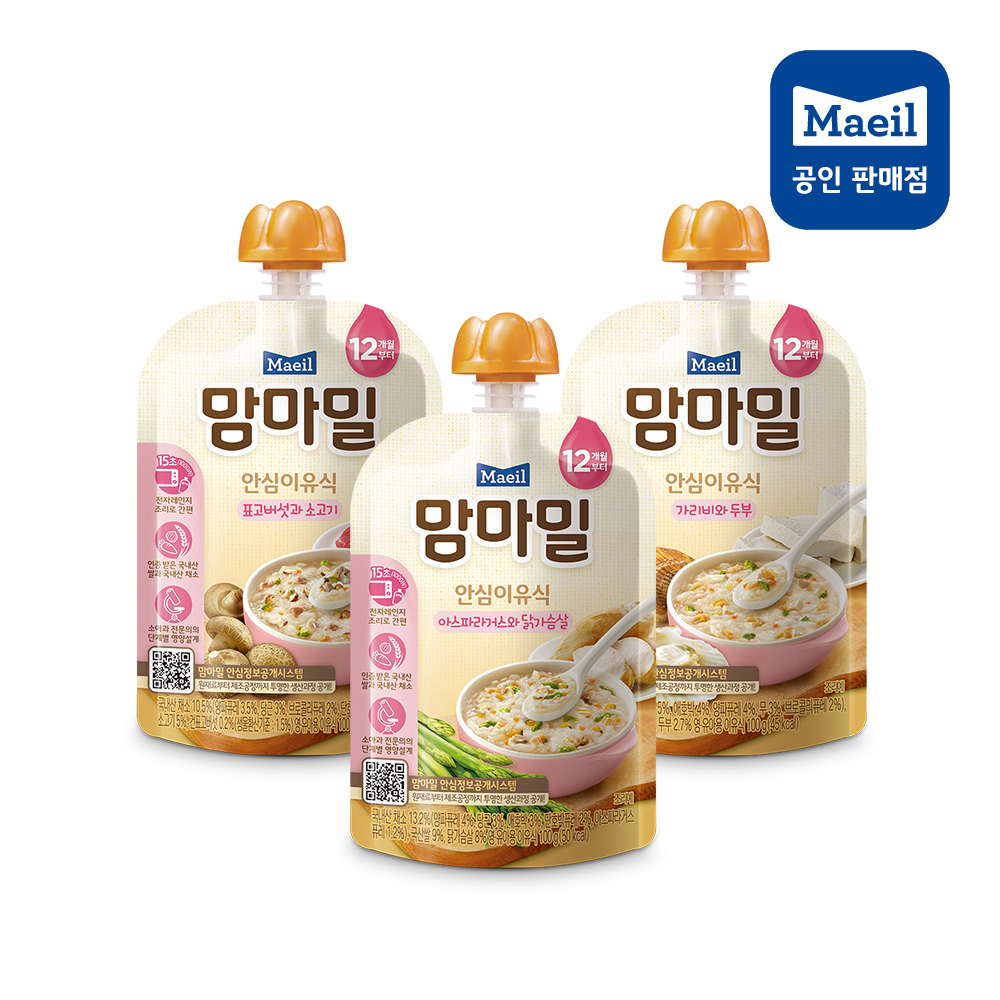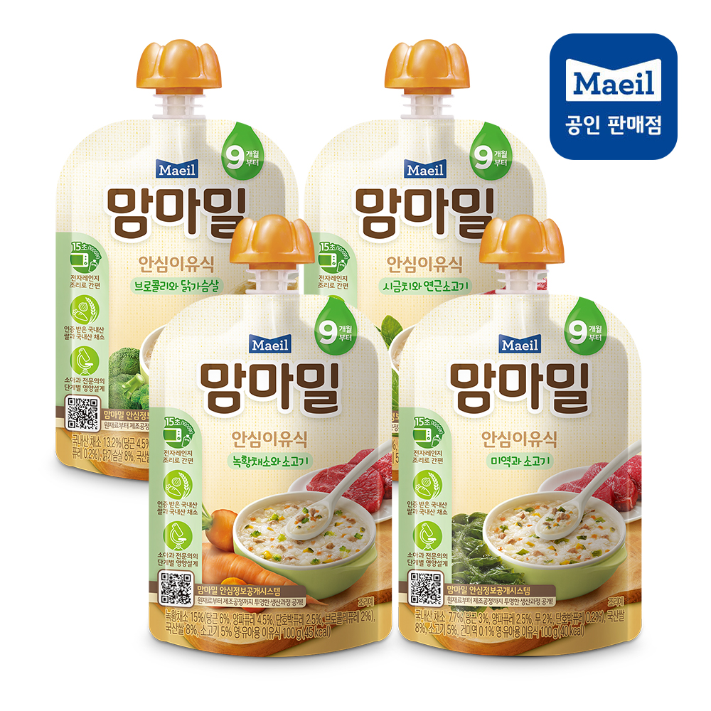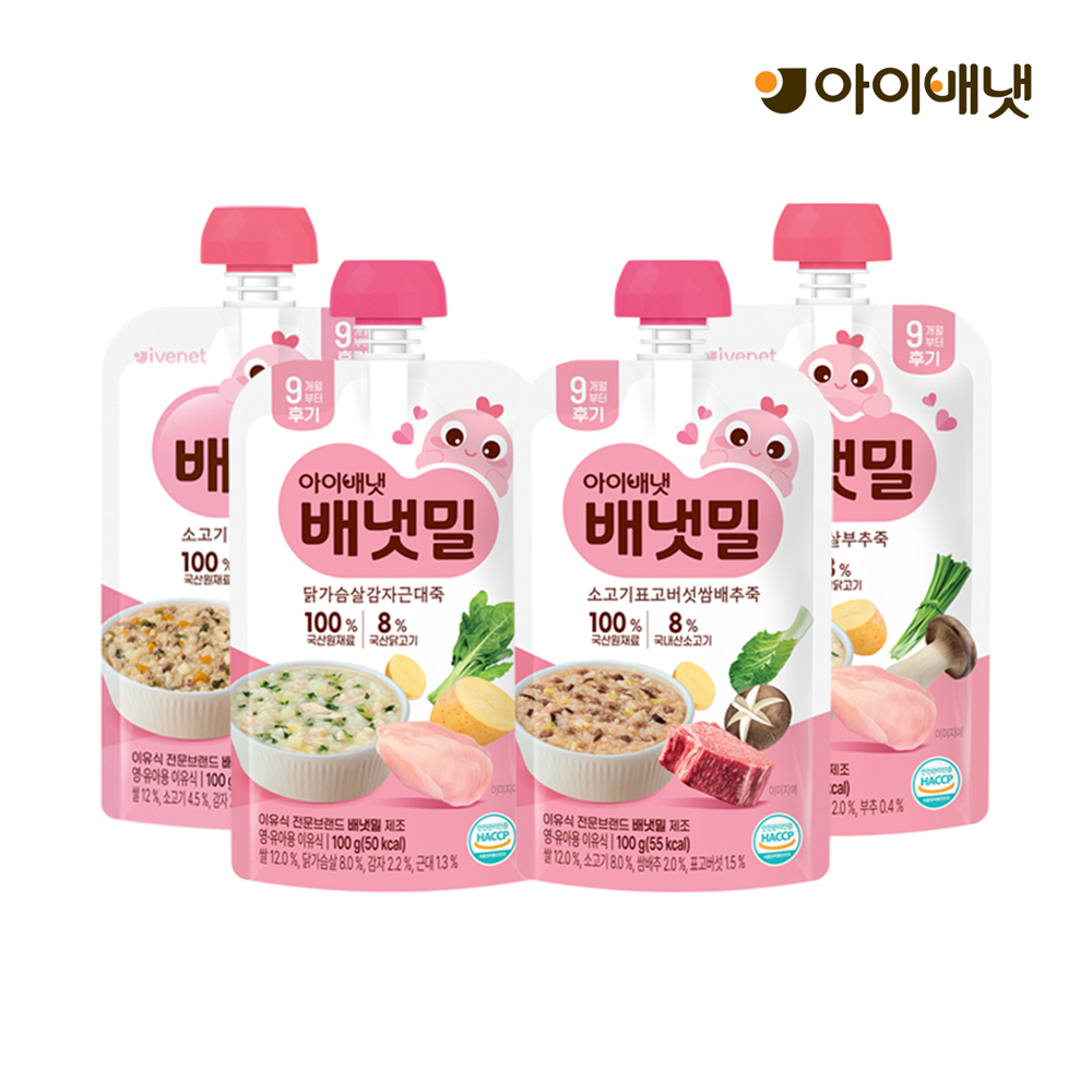 배냇밀 중기 이유식 100g 20개입 혼합맛 소고기 미역 유아식 간편식 실온이유식 아기밥