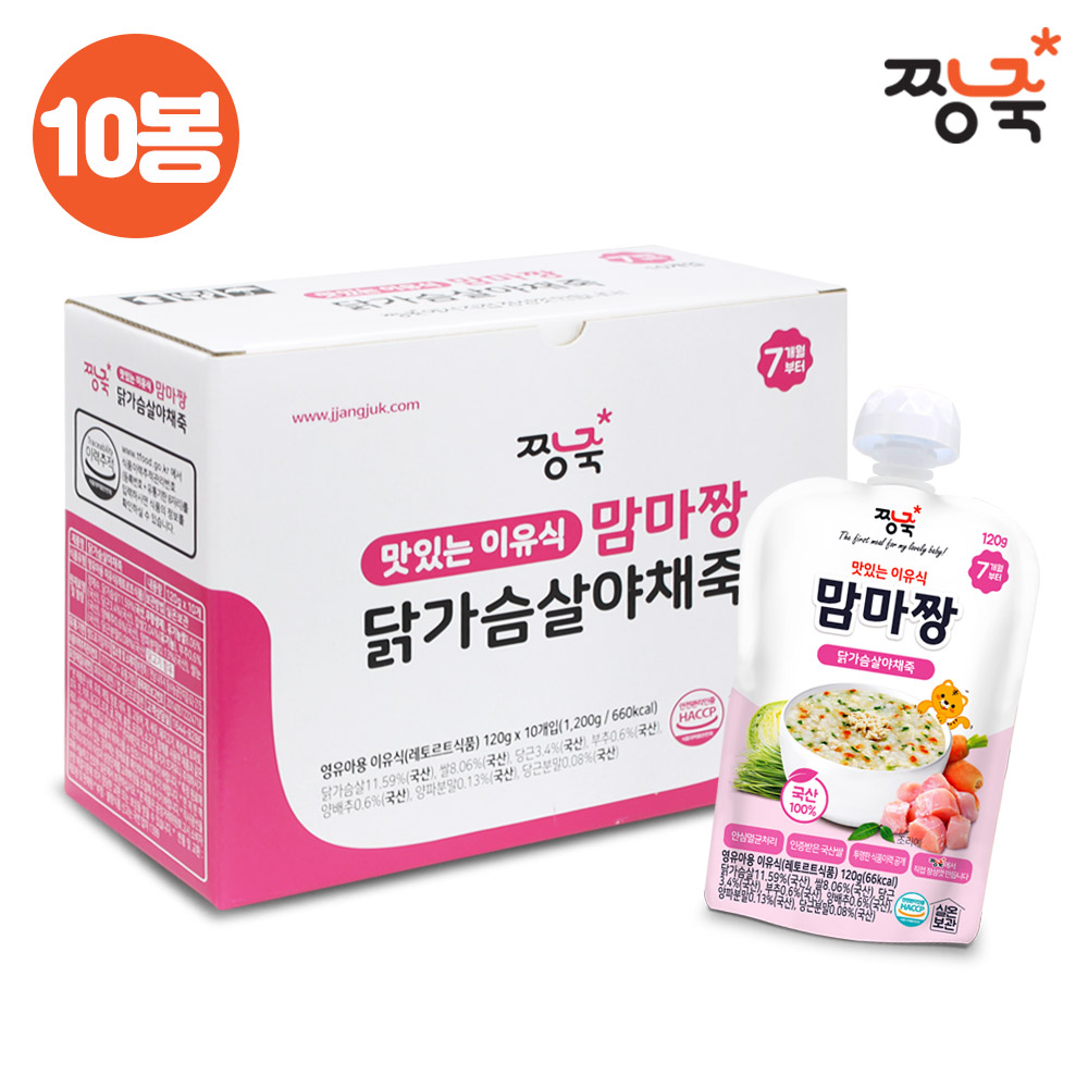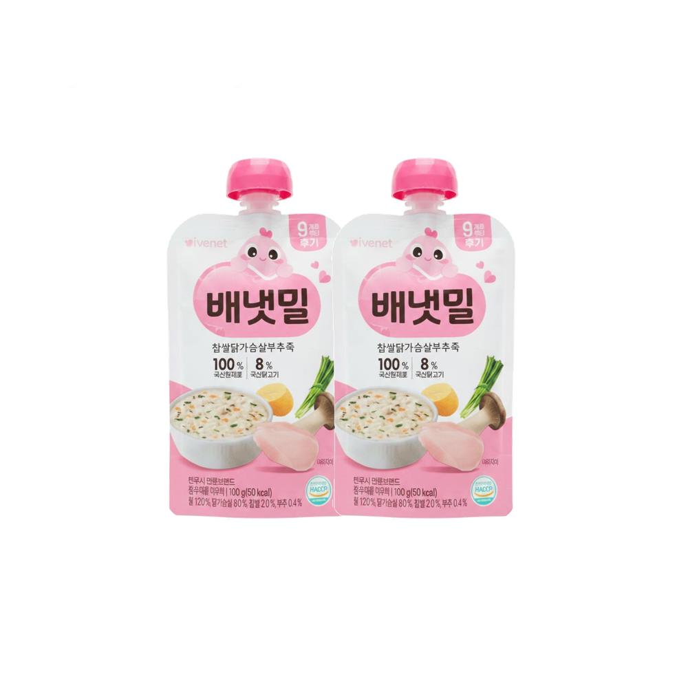 배냇밀 후기 찹쌀 닭가슴살 부추죽 100g 30개 실온보관 파우치형