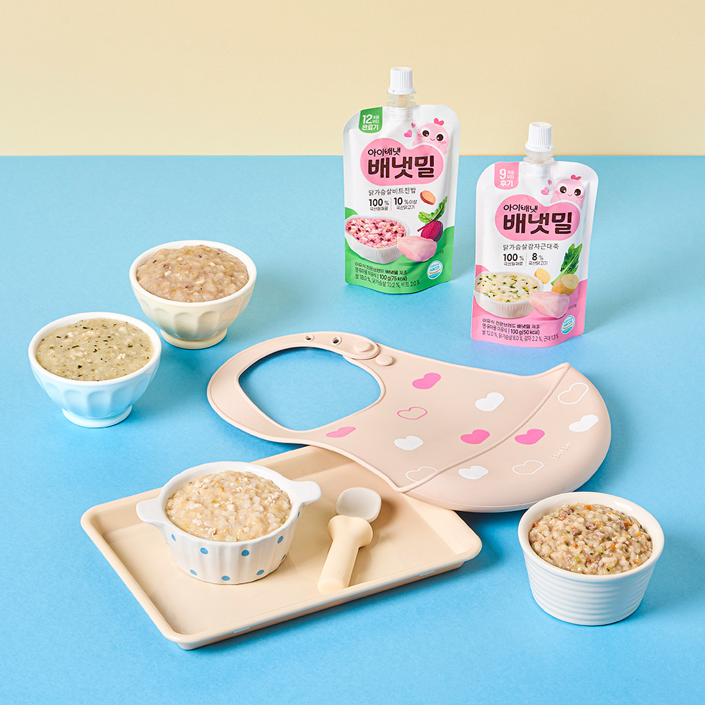 아이배냇 배냇밀 실온이유식 후기 찹쌀닭가슴살부추죽 100g 2개 기저귀가방 여행 3세트