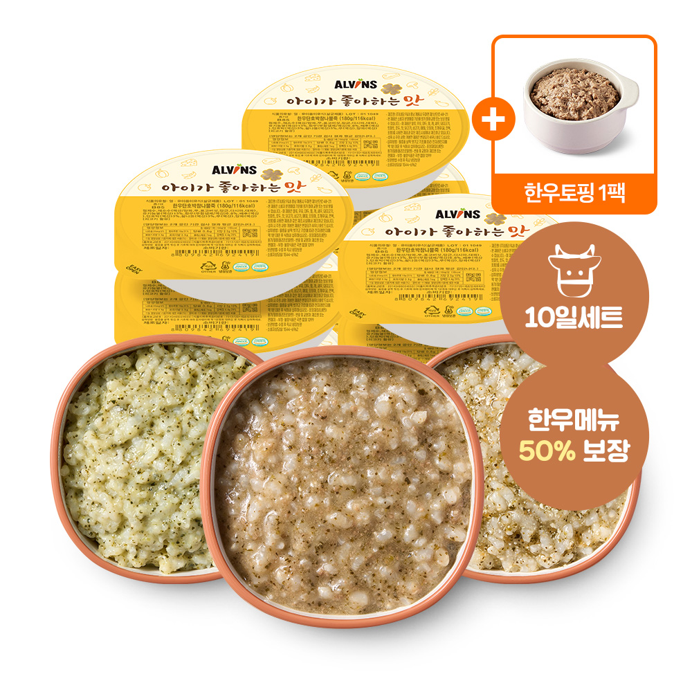 엘빈즈 한우 이유식 10일 세트 + 한우토핑 1팩 (중기 후기 완료기 영양식)