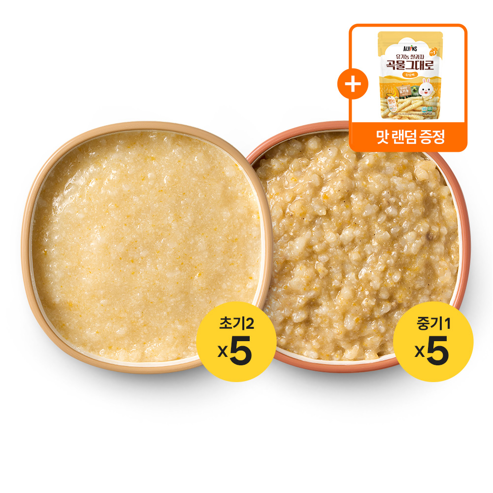 엘빈즈 이유식 초기2 5팩 + 중기1 5팩 스텝업 세트 패키지 단계변경